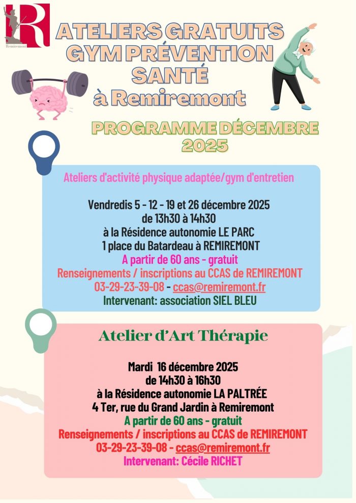 Ateliers de gym et art-thérapie pour seniors accessibles à tous à partir de 60 ans