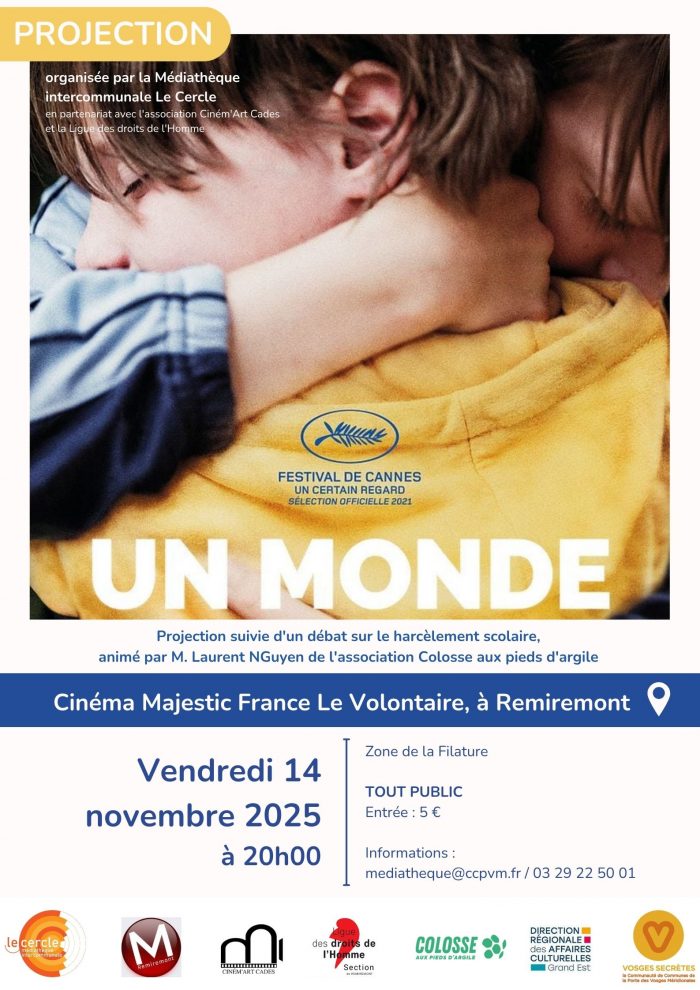Projection du film Un Monde  de Laura Wendel (2022, 75 min.) suivie d’un débat. Cinéma le Majestic Remiremont