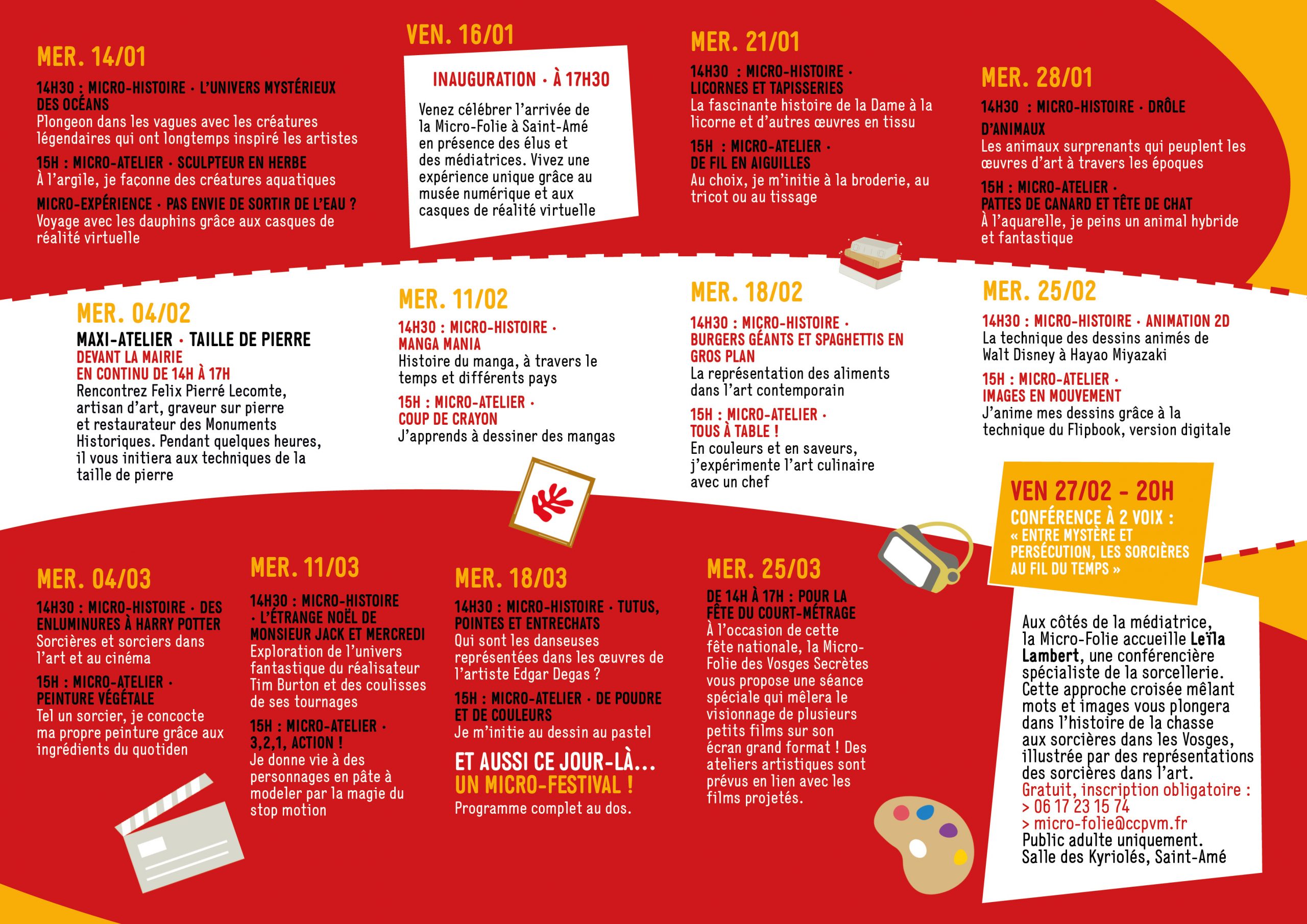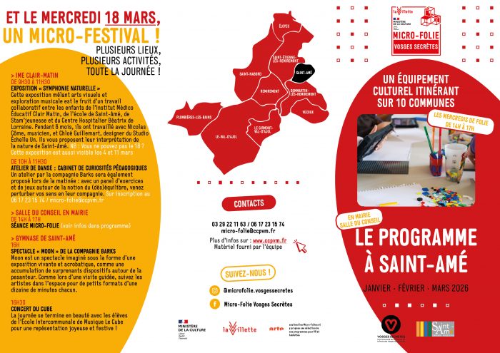 Toute l’année, la Micro-Folie Vosges Secrètes propose aux habitants, jeunes et moins jeunes, mais aussi aux groupes, associations, structures sociales et éducatives de découvrir différentes formes d’art grâce à un dispositif innovant aux multiples facettes. Toutes les activités proposées sont gratuites. Au sein du container rouge à la belle saison ou dans des lieux plus abrités à proximité, le public est accueilli par l’équipe, guidé dans l’utilisation du matériel, notamment le musée numérique et les casques VR. Le public est également accompagné lors de temps de médiation.