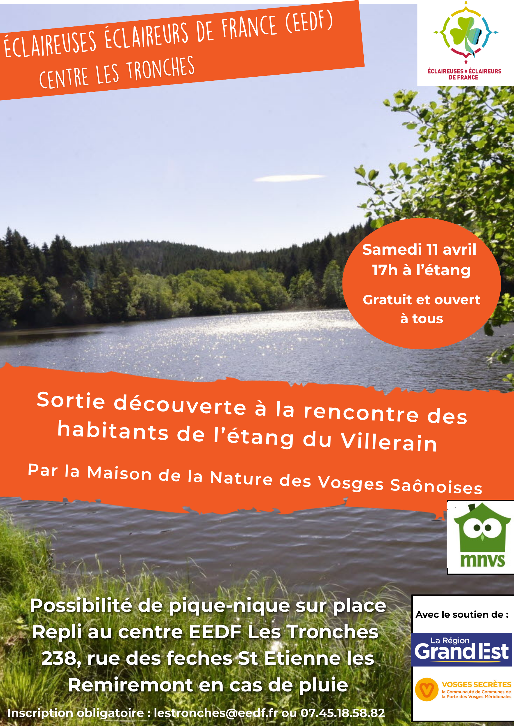 L’association Eclaireuses et Eclaireurs de France, centre les Tronches, vous propose en partenariat avec la communauté de communes de la porte des Vosges Méridionales, de découvrir l’espace naturel sensible « étang du Villerain », notamment sa faune et sa flore.
