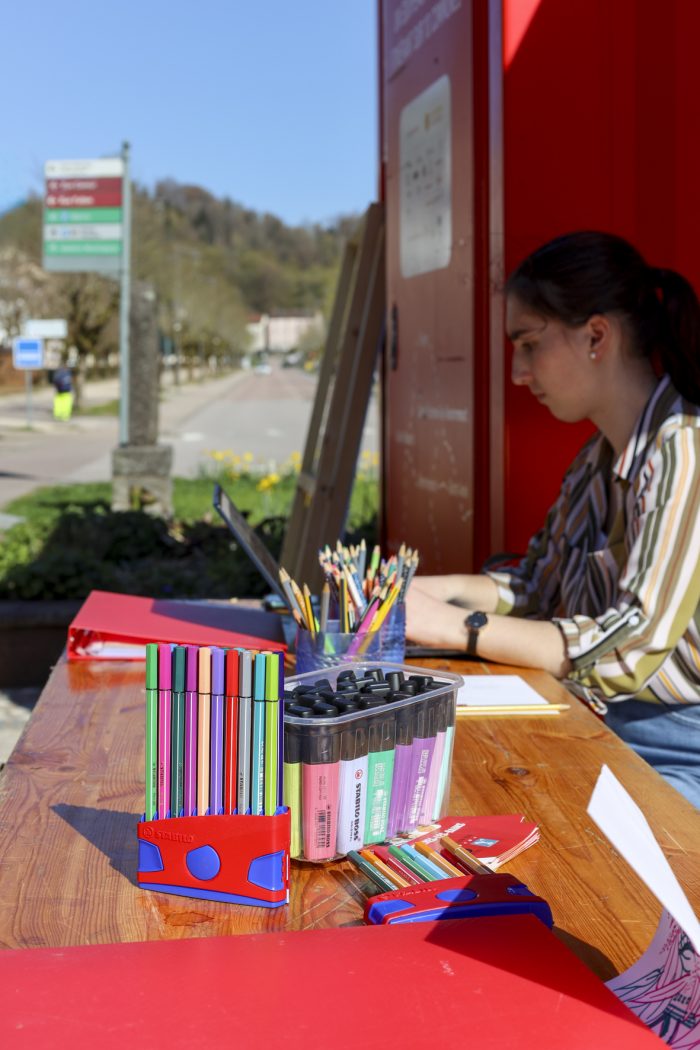 Le désormais célèbre container rouge est en place, bien visible devant la mairie et tout le matériel est prêt à être activé pour les permanences.