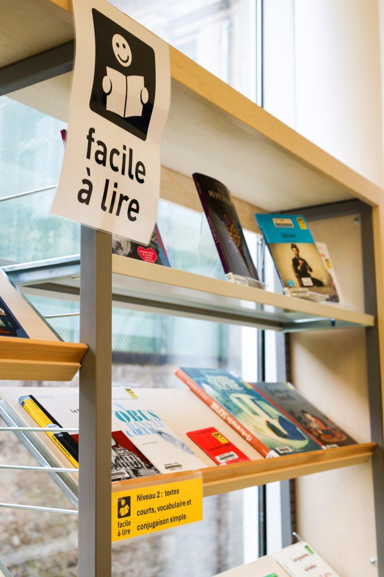 La médiathèque Le cercle accueil un espace : “facile à lire” qui consiste à faciliter la lecture des personnes ayant des difficultés de lire, qui apprennent le français ou encore en situation de handicap.