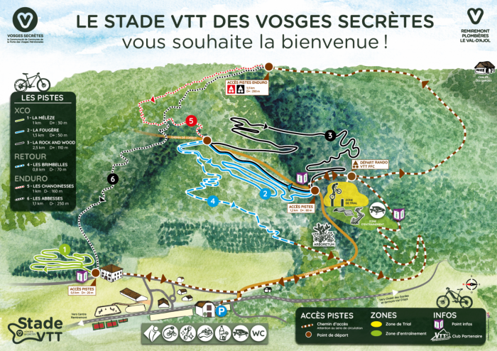 Le Stade VTT des Vosges Secrètes a pu voir le jour grâce à de nombreux financeurs : Europe – Fonds FEADER-LEADER / Région Grand Est / Conseil Départemental des Vosges / État – Fonds DSIL et grâce à la qualité du travail des entreprises et au travail des bénévoles qui ont œuvré à sa réalisation.